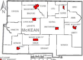 BOROUGHS: Eldred, Kane, Lewis Run, Mount Jewett, Port Allegany, Smethport